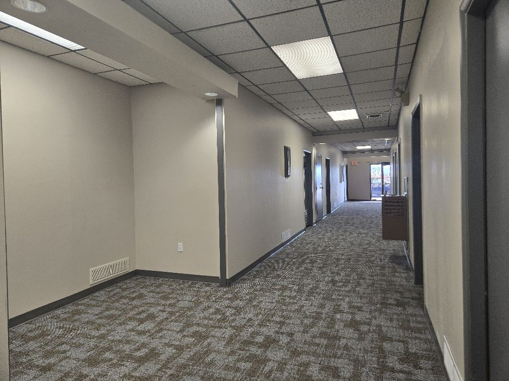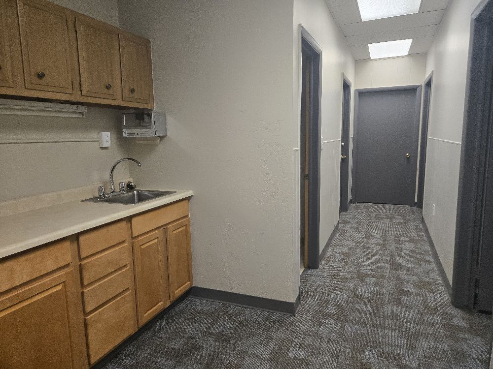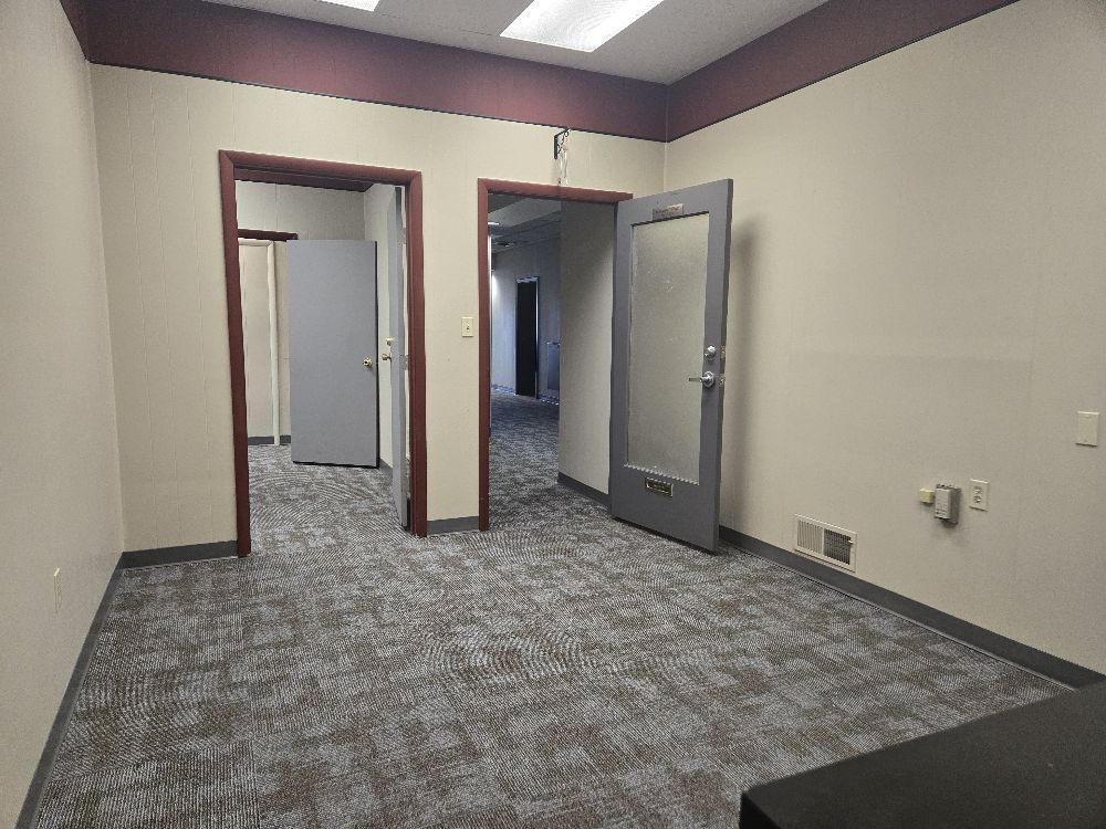 A flexible, multi-room workspace featuring built-in cabinetry, a sink and a private bathroom. This suite has been one of the favorites at E Village and located in the connecting hallway between the Center and West malls of the building. It has two additional smaller rooms that are not pictured.
